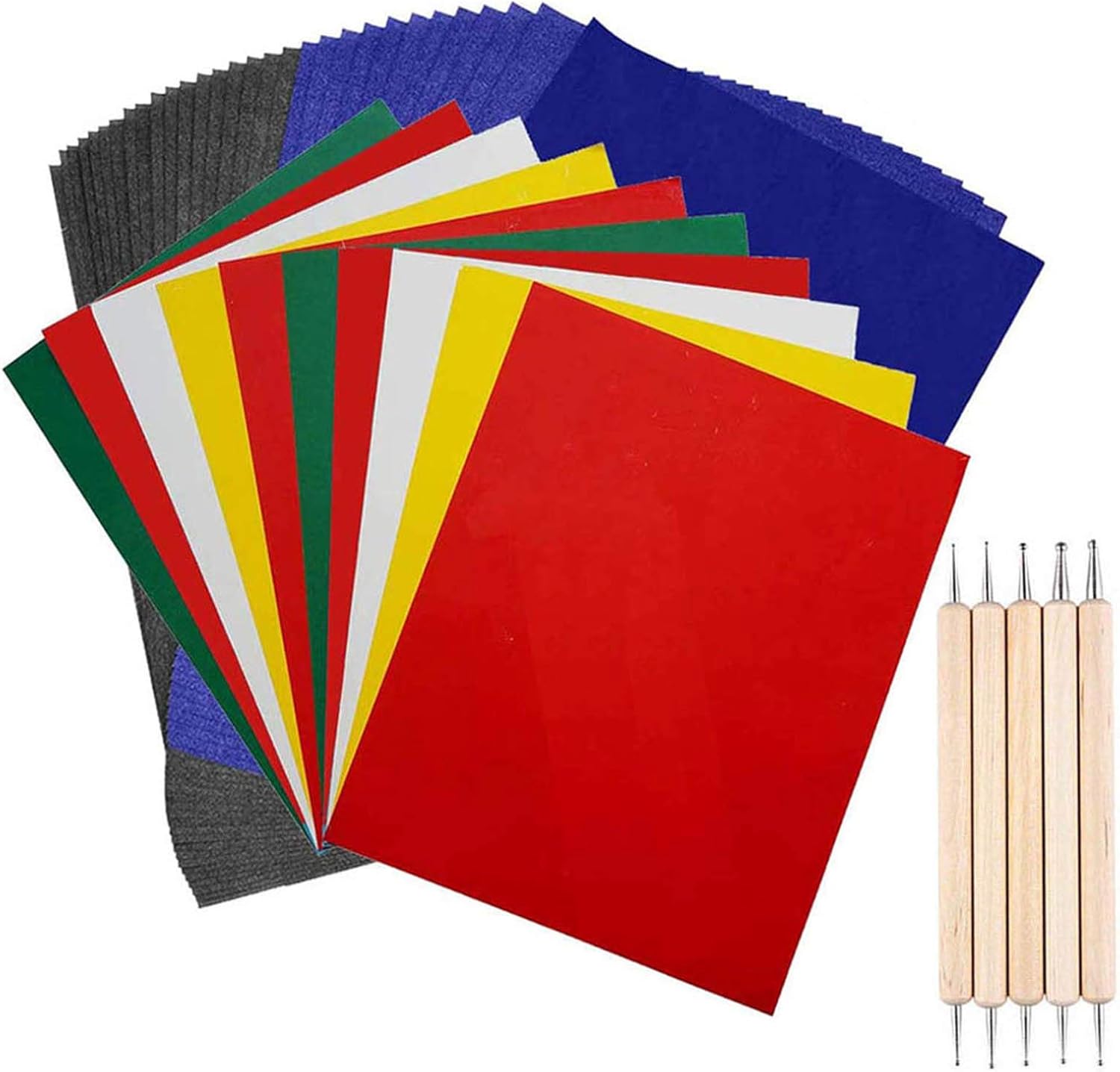 Yesallwas カーボン用紙 転写 100枚 トレーシングペーパー 多色 カーボン紙 エンボスペン5点付き 片面 写し紙 コピー用紙 一番の